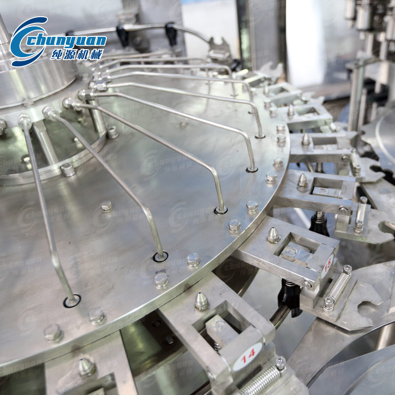 純源機械廠家供應(yīng)的全自動冰紅茶飲料灌裝機械采用卡瓶頸傳動技術(shù),實現(xiàn)全自動沖瓶、灌裝、旋蓋等工序,自動化程度高;配有完善的溫度控制系統(tǒng)和回流系統(tǒng),設(shè)有完善的自動清洗系統(tǒng)及控制程序,整個飲料機械與液體接觸的零件全部使用優(yōu)質(zhì)不銹鋼材料及食品級橡膠。