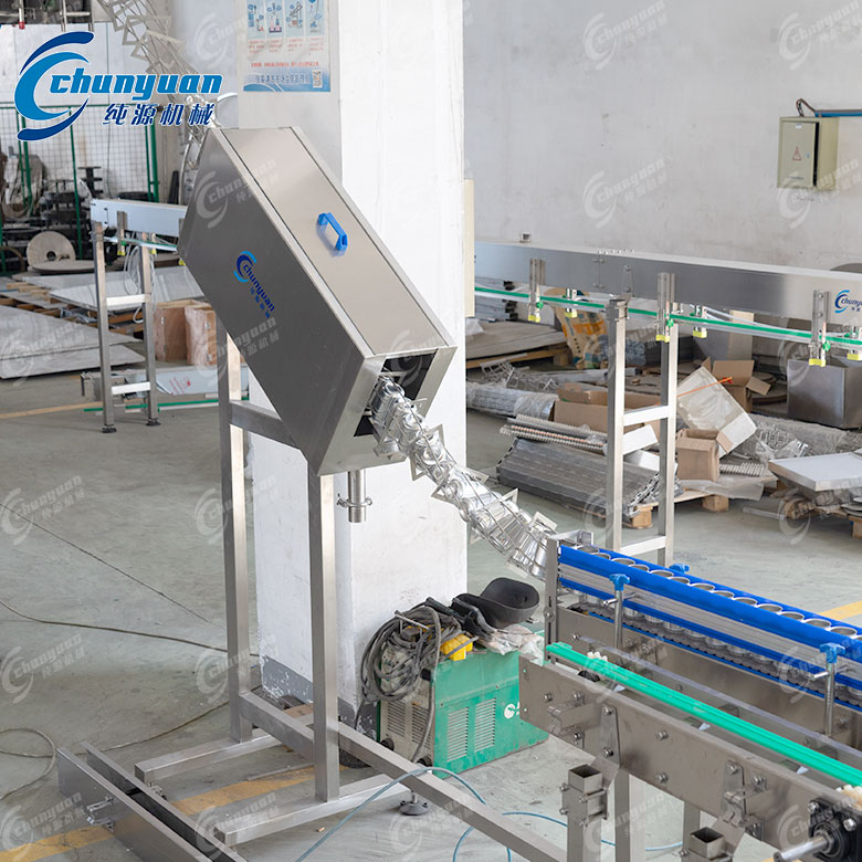 易拉罐卸垛設(shè)備通過特定的機械結(jié)構(gòu),將堆疊于棧板上的空罐,由下而上一層層的提升并推至輸送機上。整個過程由自鎖式升降系統(tǒng)裝置控制,能單獨調(diào)整上升或下降的速度,以適應(yīng)不同的操作需求???。卸罐動作通常由電機帶動鏈輪、鏈條裝置進行,整層的空罐被推至網(wǎng)式輸送機上,然后回歸至準備位置,繼續(xù)將下一層推出???。