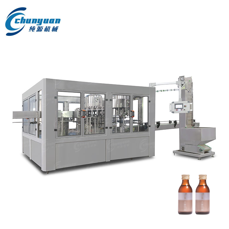純源機械廠家供應(yīng)的椰奶飲料灌裝機械是集封口灌裝-制蓋上蓋-電熱封口為一體的自動灌裝機組,主要適用于PP或PE瓶乳品植物蛋白飲料以及果汁類產(chǎn)品的灌裝封口。...