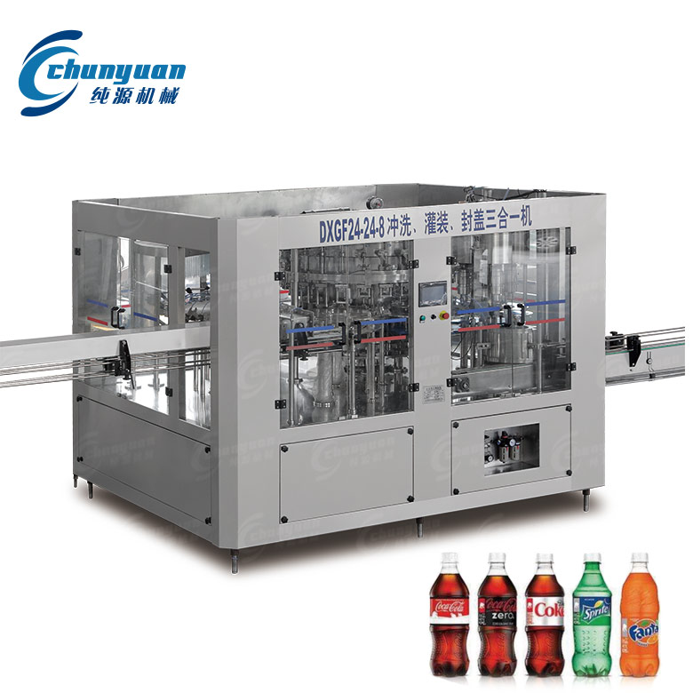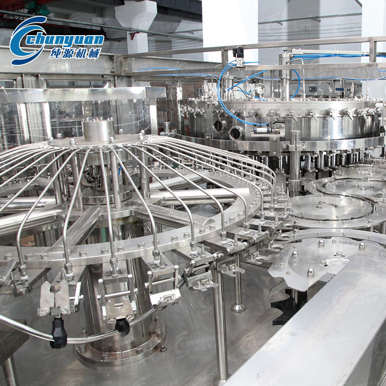 純源機械廠家生產的碳酸飲料灌裝機采用不銹鋼材料制成。碳酸飲料設備具有結構合理、工藝先進、操作方便、適用范圍廣等特點,是中小型飲料廠家理想的生產流水線機組。