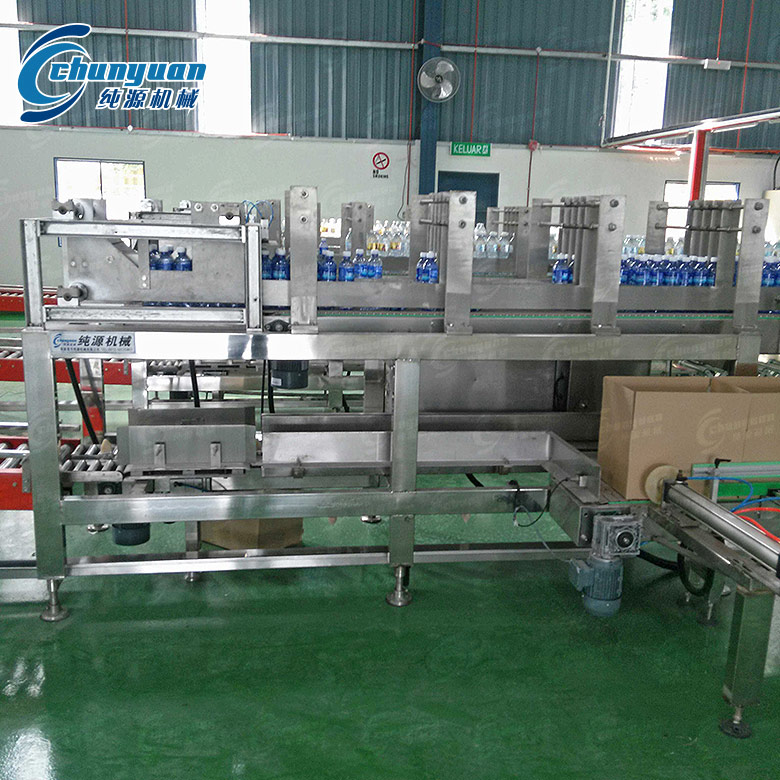 跌落式裝箱機(jī)采用PLC+觸摸顯示控制,設(shè)有缺瓶報(bào)警裝置,無(wú)瓶不裝箱的安全保護(hù)。本流水線大大方便操作、管理、減少生產(chǎn)人員和勞動(dòng)強(qiáng)度,是自動(dòng)化規(guī)模生產(chǎn)必不可少的設(shè)備。